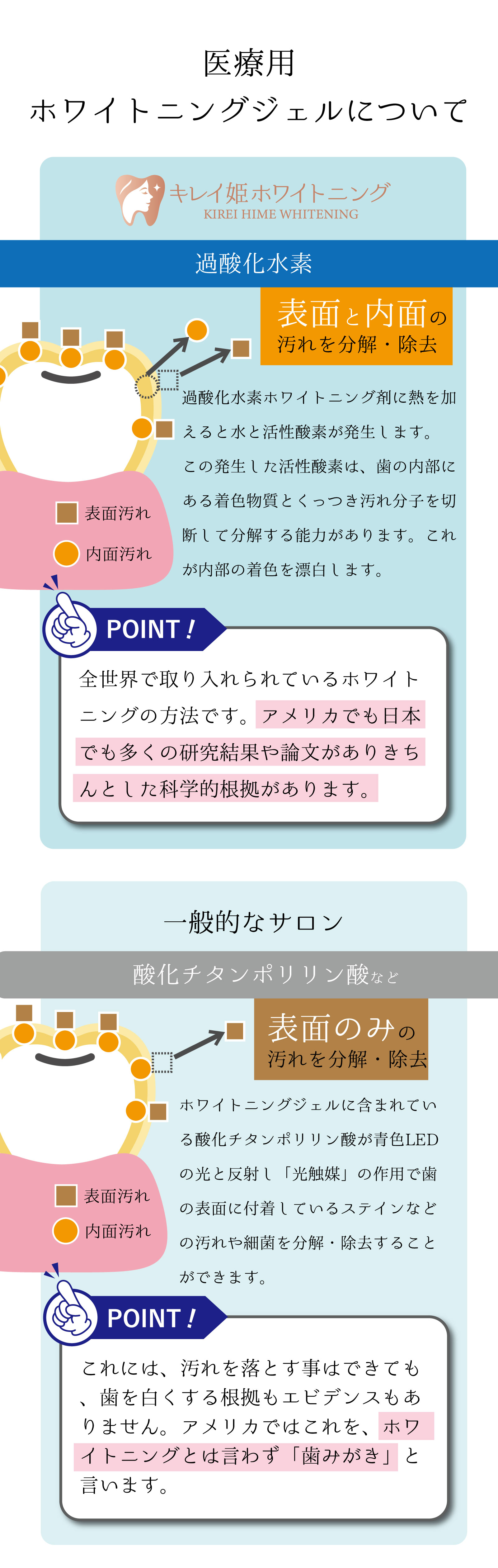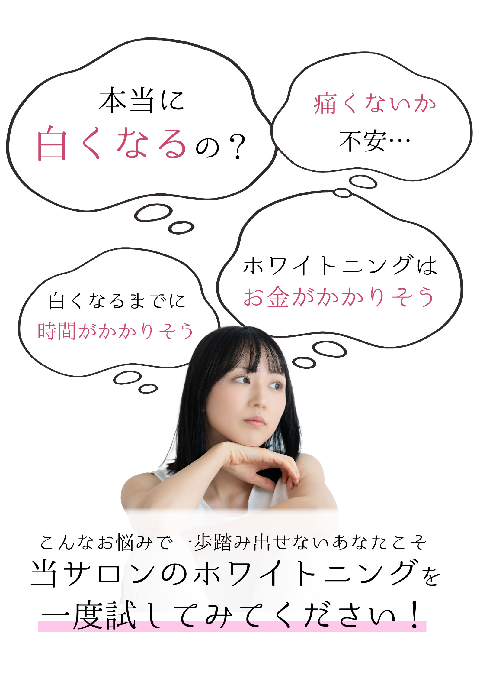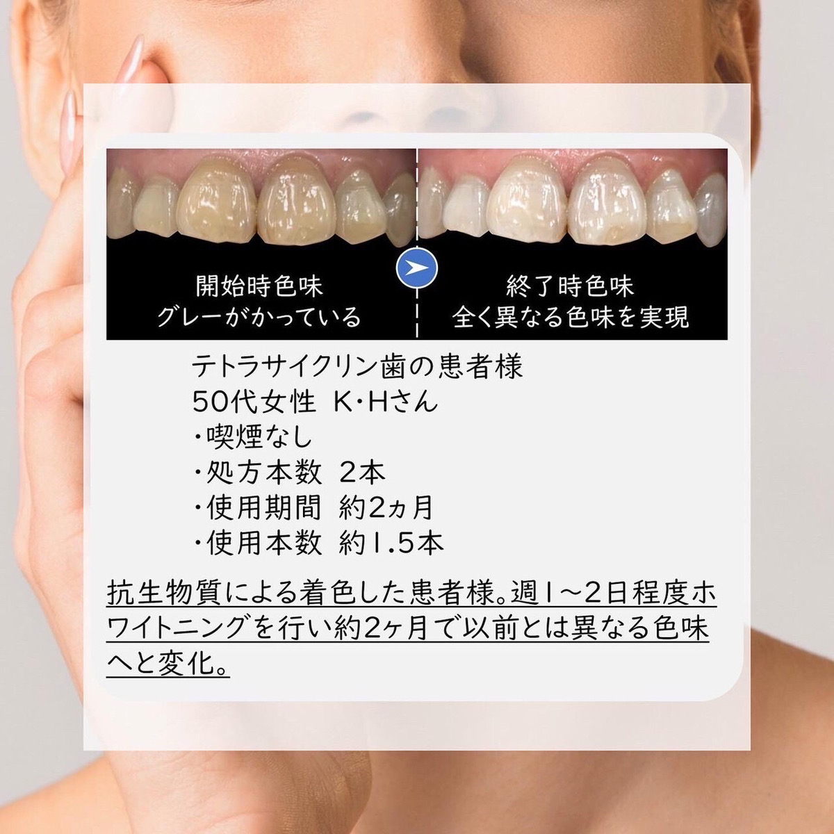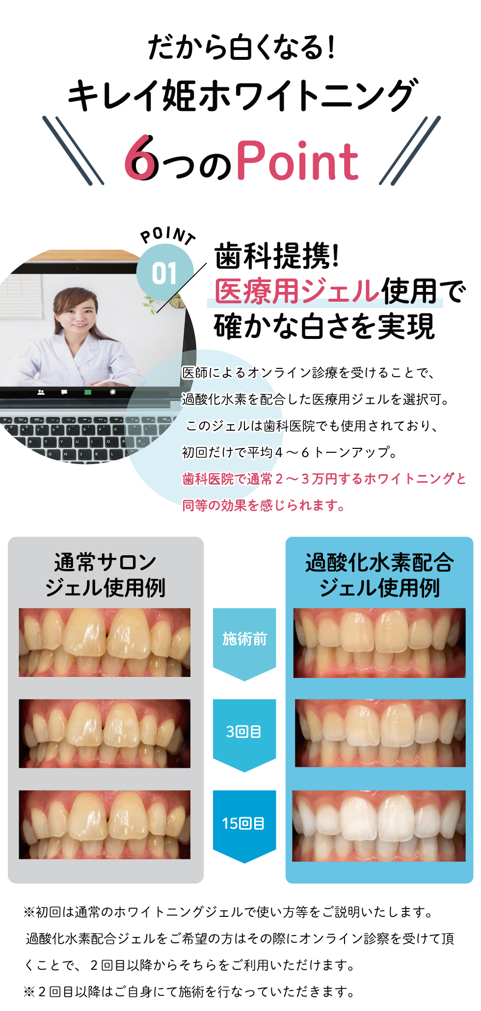 1回の施術で誰もがビックリするほど白くなることはなく、施術の度に徐々に白くなる為、御心配ありません。