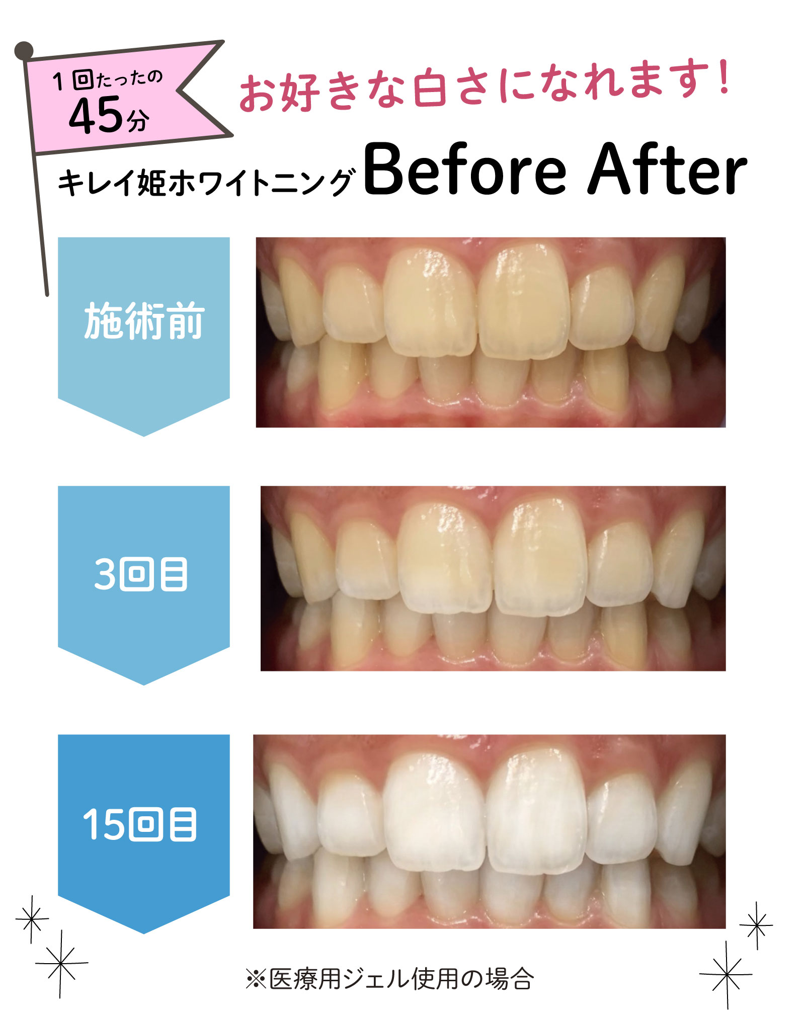 ご希望の白さに近付く為に、施術回数を調整していただけます。