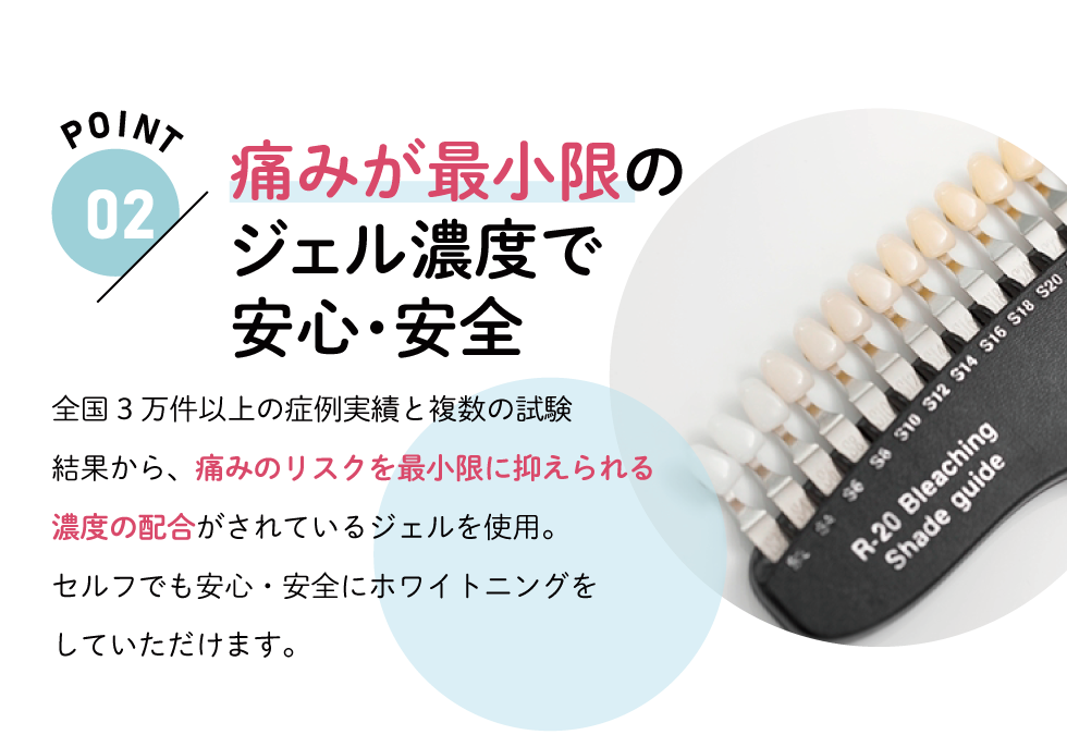 当サロンのホワイトニングは痛みを感じる事は少なく、個人差はありますが全く感じない方も多くいらっしゃいます。